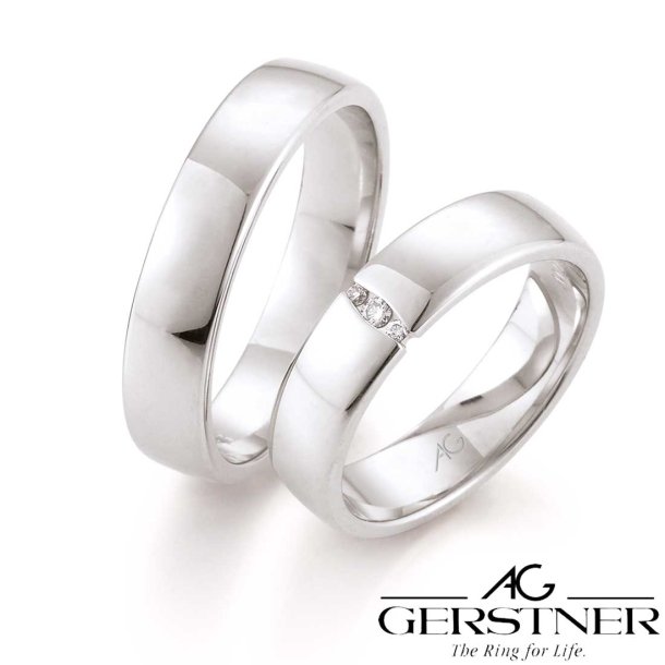 Ringe i palladiums legeret Hvidguld, ringene har en blank poleret overflade, i dameringen er der 3stk glinsende brillanter. Ringene kan også leveres i Rosaguld eller Alm Guld, kontakt os for mere info. Ønskes 18karat kontakt os for pris.