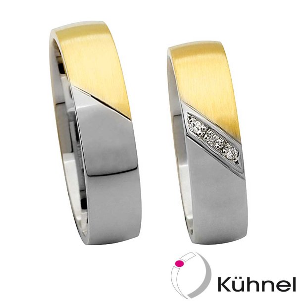 • Dameringen - Alm Guld og Hvidgulds ring med 3 Brillant eller Zirkonia i alt 0,03 ct.